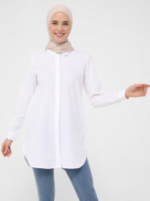 Refka Beyaz Gizli Düğmeli Tunik