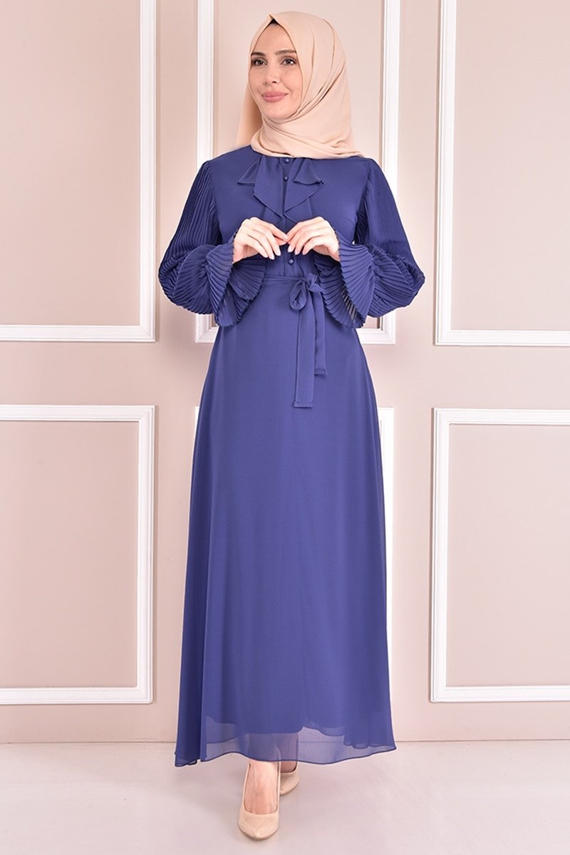 Moda Merve İndigo Şifon Elbise