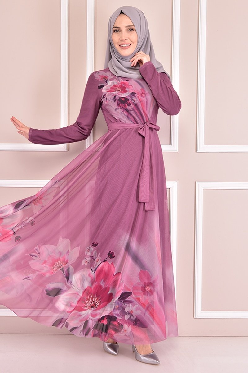 Moda Merve Gül Kurusu Tül Elbise