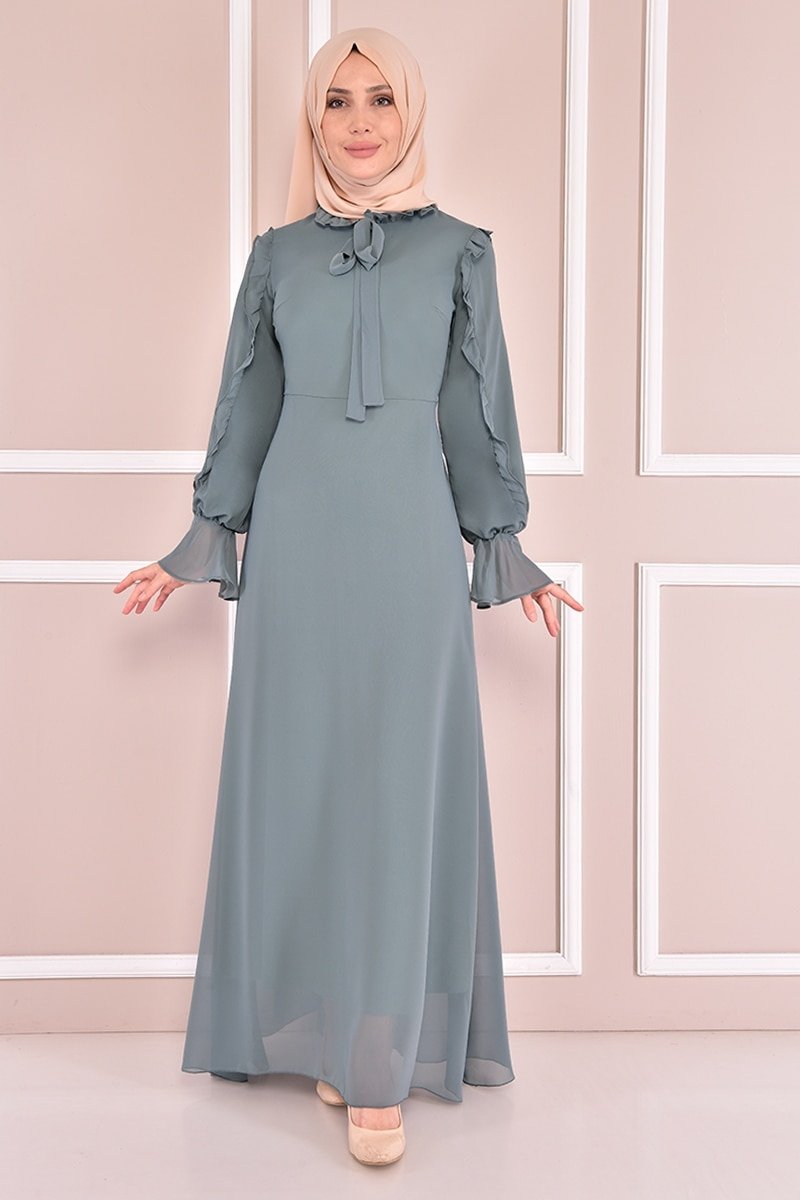 Moda Merve Mint Şifon Elbise