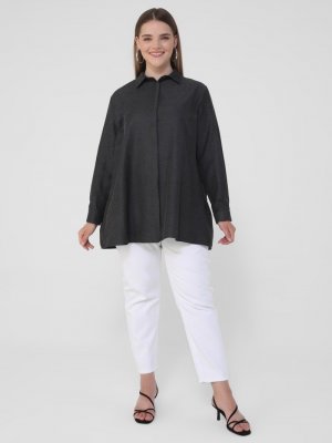 Alia Siyah Büyük Beden Gizli Düğmeli Tunik