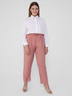 Alia Pudra Büyük Beden Beli Bağcıklı Pamuklu Pantolon