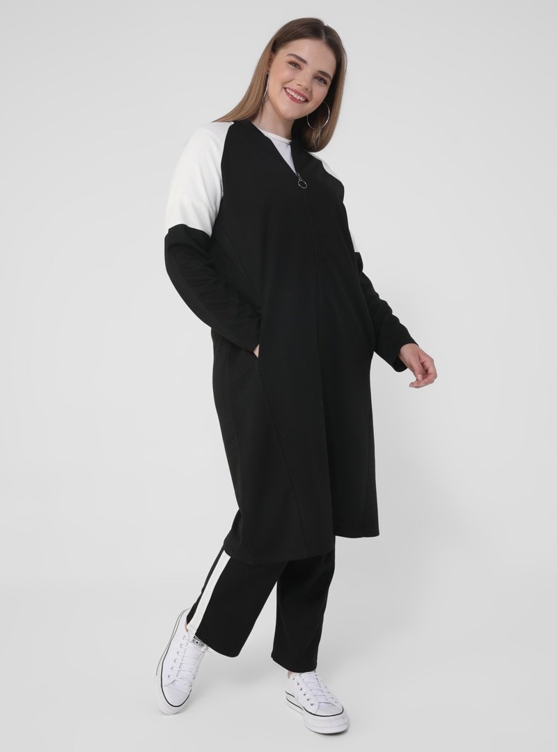Alia Siyah Beyaz Büyük Beden Tunik&Pantolon İkili Takım