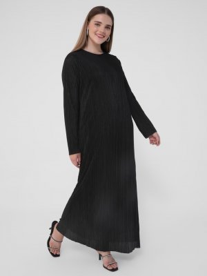 Alia Siyah Büyük Beden Pileli Elbise