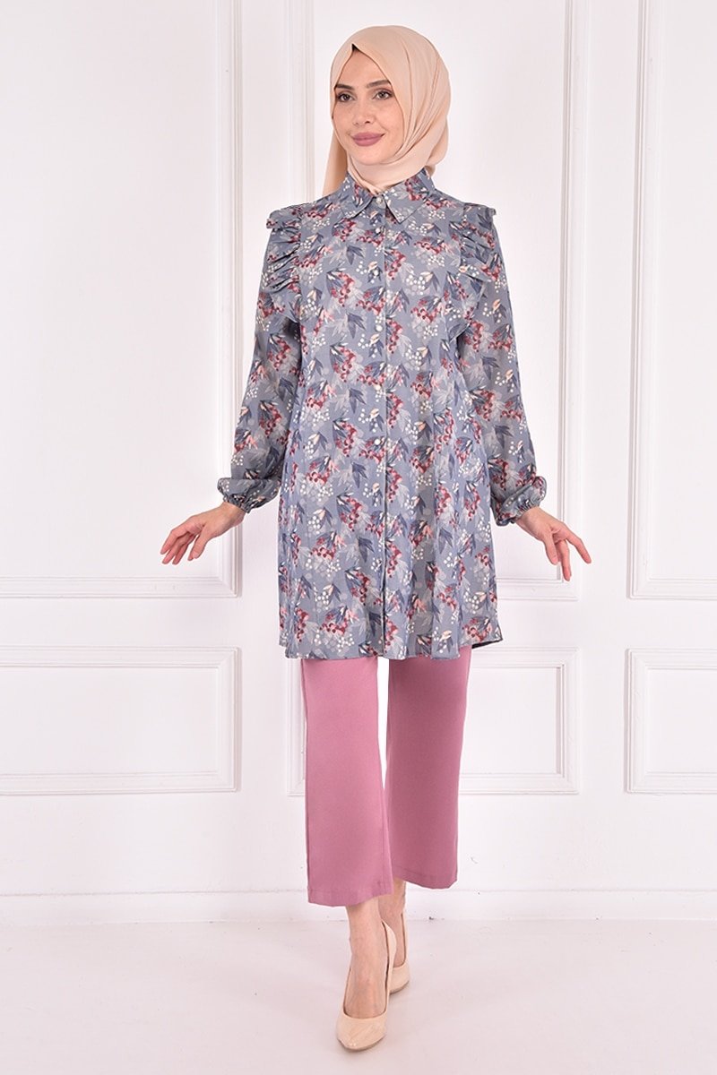 Moda Merve İndigo Düğmeli Kombin