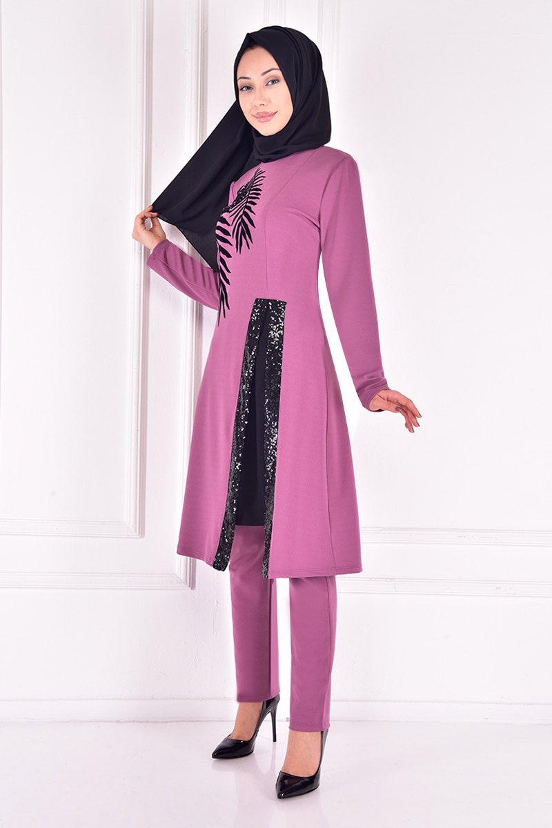 Moda Merve Gül Kurusu Desenli Kombin