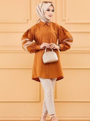 Tofisa Taba Bej Balon Kollu Düğmeli Tunik