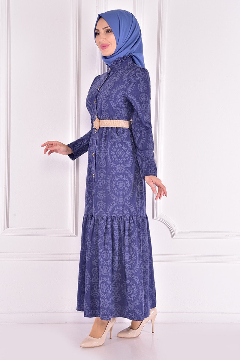 Moda Merve İndigo Kemerli Elbise