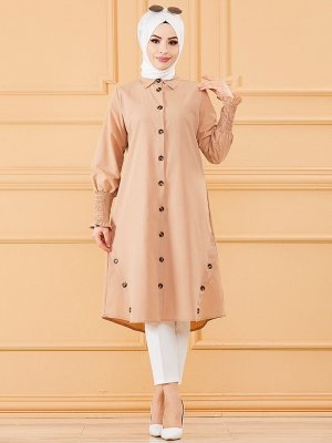 Tofisa Bej Düğme Detaylı Tunik