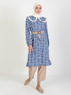 Sevit-Li Mavi Çiçek Desenli Tunik