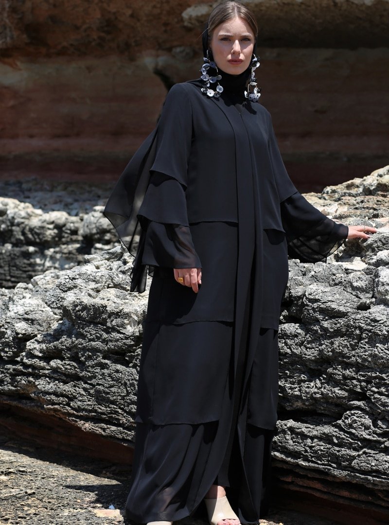 Nuum Design Siyah Şifon Abaya & Şal Takım