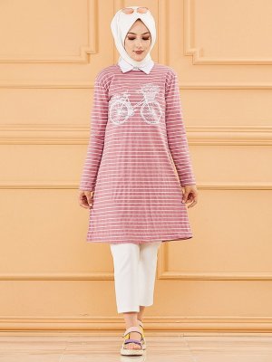 Tofisa Gül Kurusu Çizgili Tunik