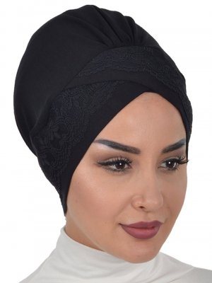 Ayşe Türban Tasarım Siyah Dantelli Penye Bone
