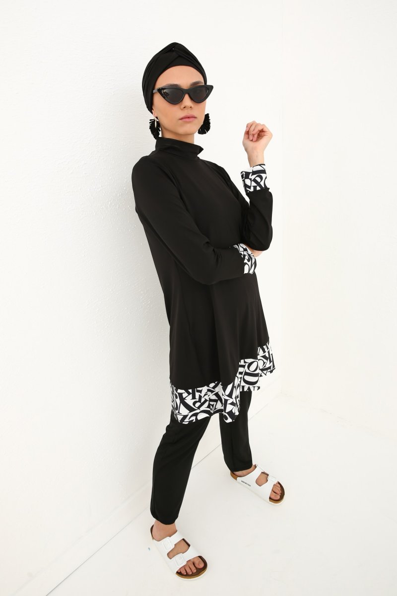 Allday Siyah Etek ve Kol Ucu Desenli Dörtlü Mayo