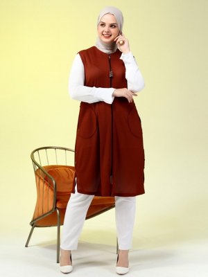 Ferace Kiremit Petek Cepli Fermuarlı Yelek