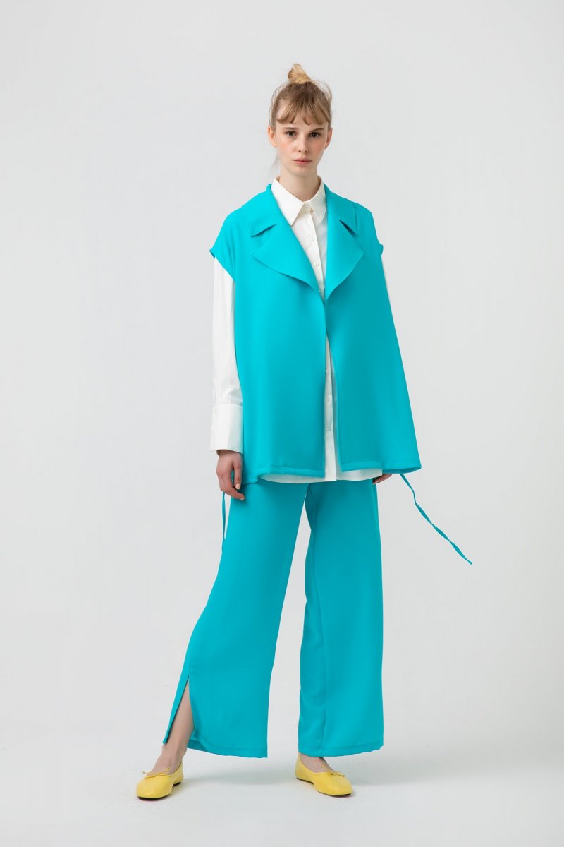 Touche Prive Turkuaz Bağcıklı Krep Yelek