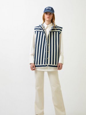 Touche Prive Mavi Çizgili Denim Oversize Yelek