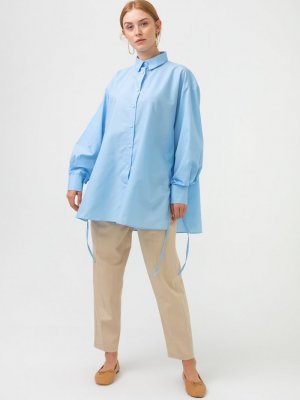 Touche Prive Mavi Yanı Bağcıklı Poplin Gömlek