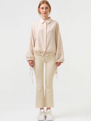 Touche Prive Bej Çizgili Kısa Gömlek