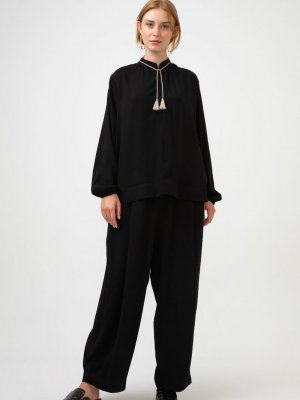 Touche Prive Siyah Püsküllü Evaze Bluz