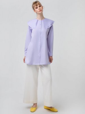 Touche Prive Lila Geniş Yaka Poplin Gömlek