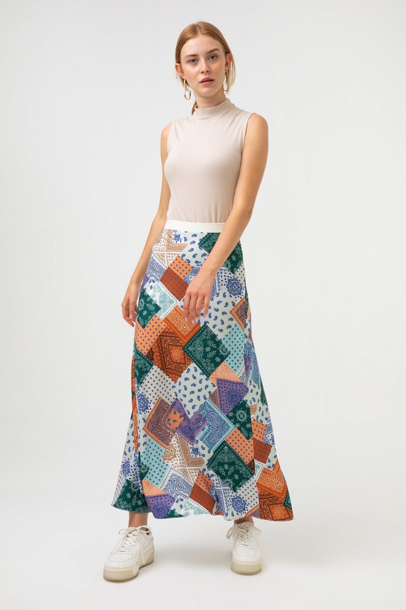 Touche Prive Mavi Beli Ribanalı Şal Desen Etek