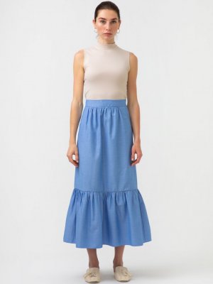 Touche Prive Denim Büzgülü Poplin Kot Etek