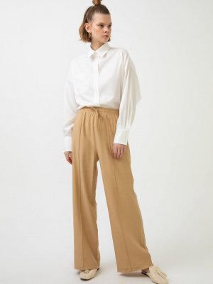 Touche Prive Bej Nervürlü Dökümlü Pantolon