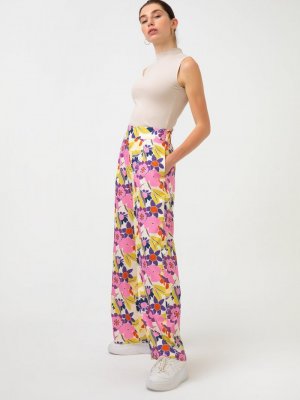 Touche Prive Ekru Retro Çiçekli Pantolon