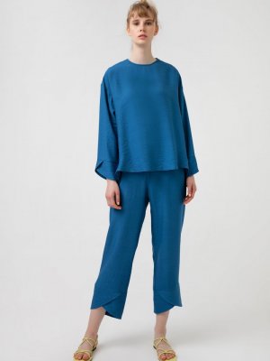 Touche Prive Denim Keten Görünümlü Dökümlü Tunik