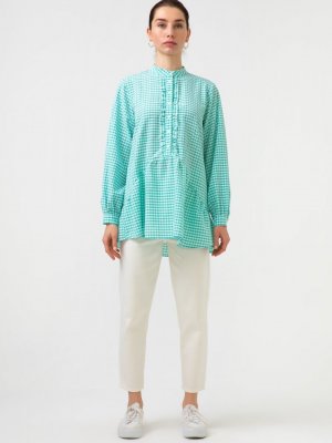 Touche Prive Mint Büzgülü Pötikare Tunik