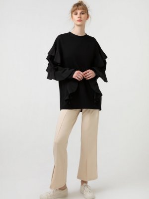 Touche Prive Siyah Volanlı Örme Tunik