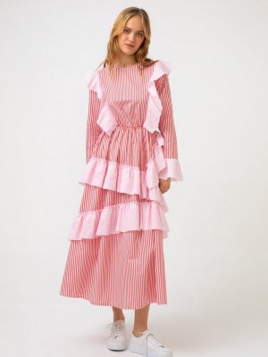 Touche Prive Pembe Büzgülü Çizgili Elbise