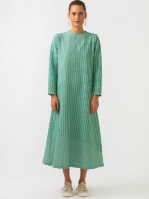 Touche Prive Yeşil Asimetrik Çizgili Pamuk Elbise