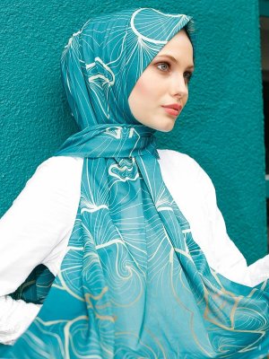 Şalevi Yeşil Çiçekli Penye Şifon Şal