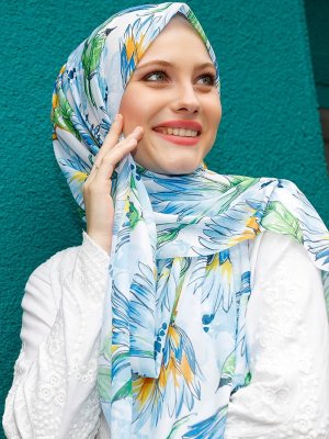 Şalevi Mavi Desenli Penye Şifon Şal