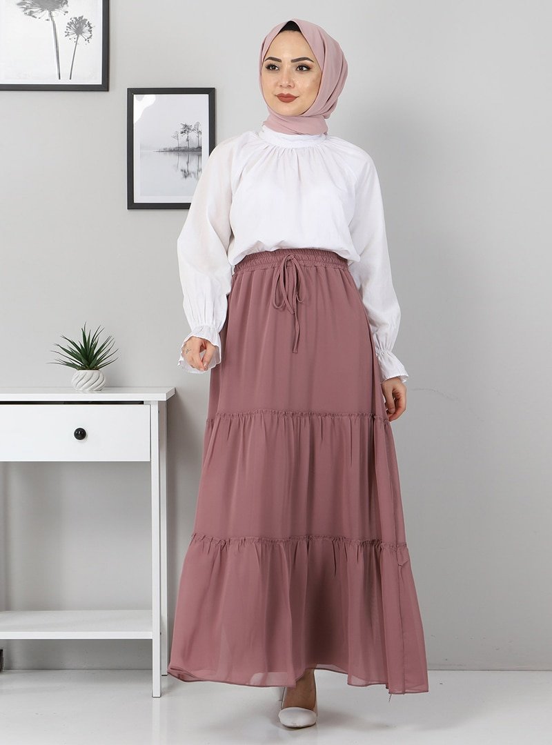 MISSVALLE Lila Fırfırlı Şifon Etek