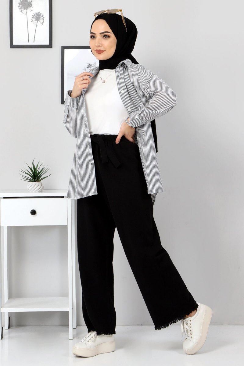 Tesettür Dünyası Siyah Beli Lastikli Bol Paça Pantolon