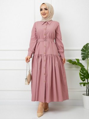 SAHRA BUTİK Gül Sivri Yaka Elbise