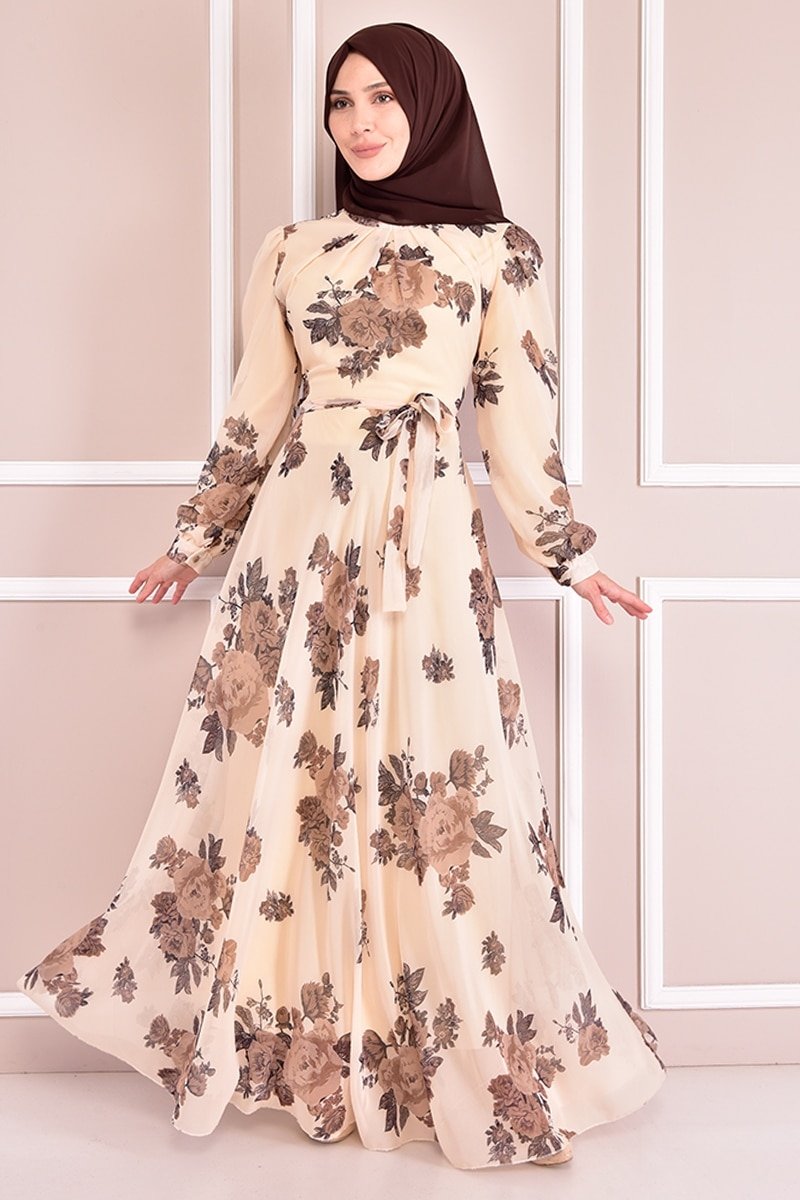 Moda Merve Kahverengi Şifon Elbise