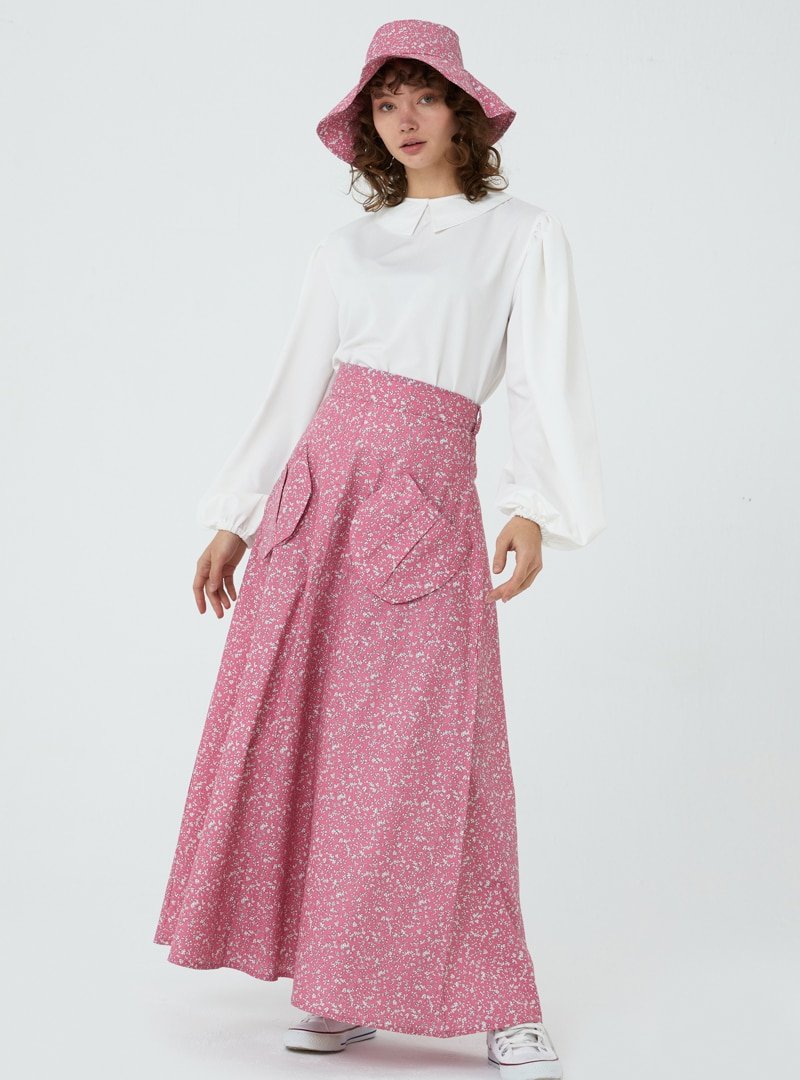 Ceylan Otantik Pembe Cepli Çiçekli Mevlana Etek