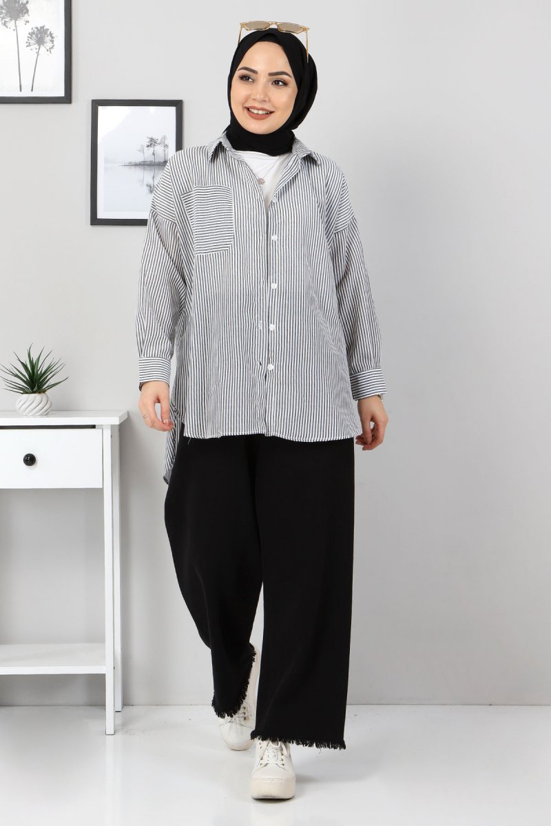 Tesettür Dünyası Siyah Çizgili Gömlek