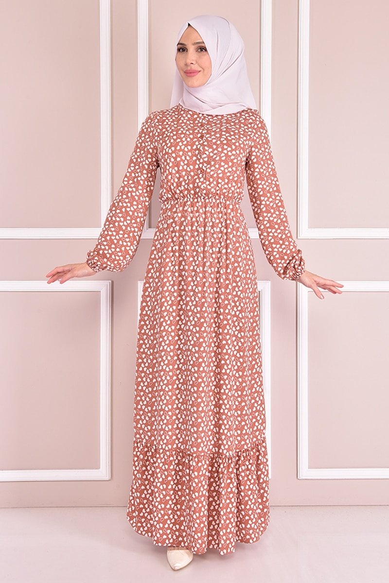 Moda Merve Karamel Düğmeli Elbise