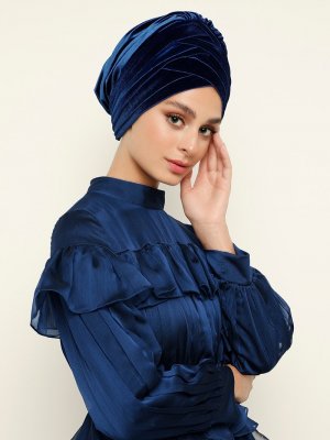 Hazır Duvak Dünyası Saks Mavisi Melike Hazır Türban