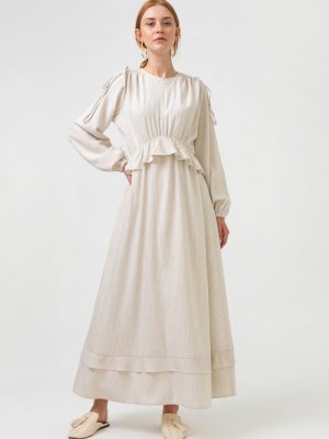Touche Prive Bej Volonlı Viskon Elbise