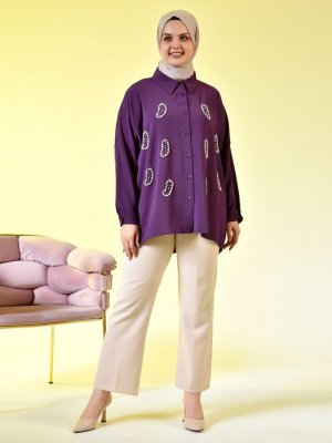 Ferace Mürdüm Taş İşlemeli Gömlek