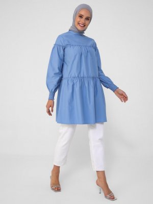 Refka İndigo Kol Uçları Gipeli Kat Kat Poplin Tunik