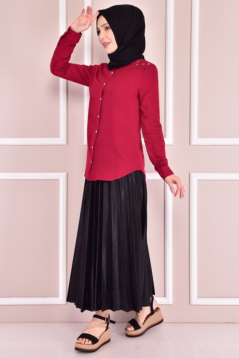 Moda Merve Bordo Kuş Gözü Detay Gömlek
