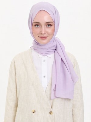 Burden İpek Lila Naturel Dikişli Düz Şal