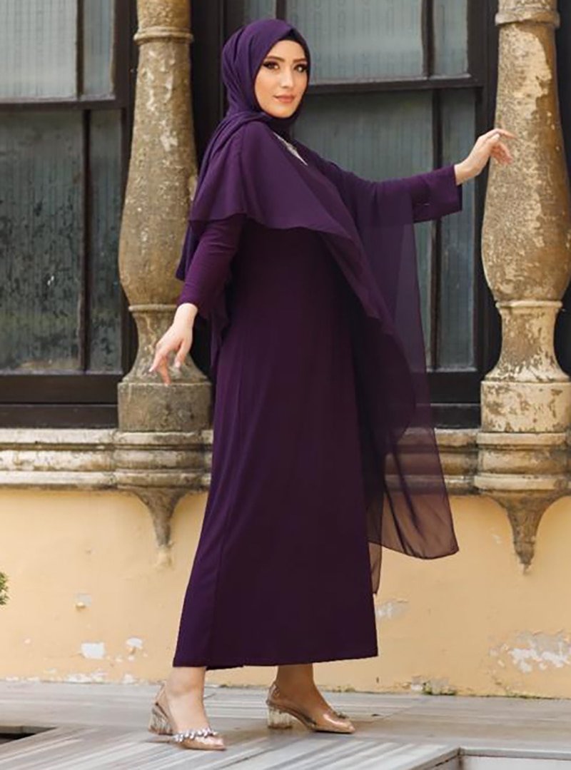 Ebru Çelikkaya Mürdüm Minel Abiye Elbise